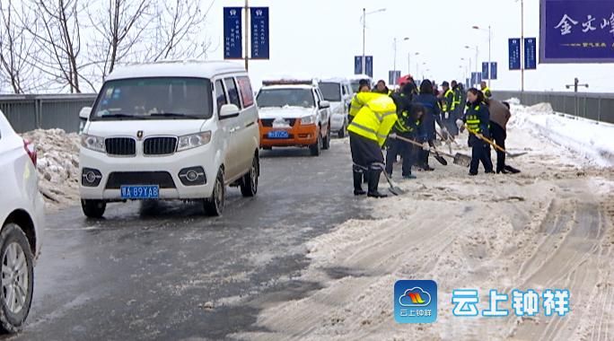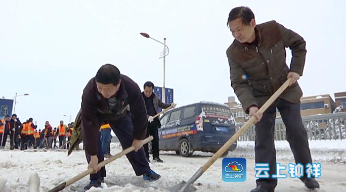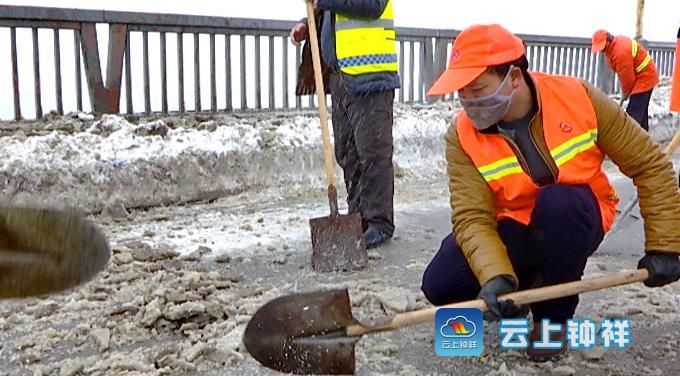 连续两天的降雪使钟祥大桥桥面上结了一层厚厚的冰,严重影响车辆通行。1月5日,钟祥市公路管理局将主题党日活动搬到了大桥上,90多名党员,200多名干部职工上桥除雪,确保大桥畅通。