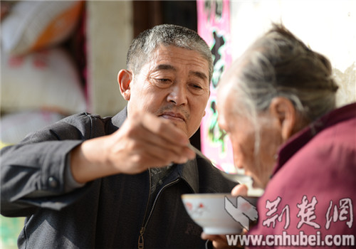 严富荣给李敬葵喂饭。 通讯员 供图