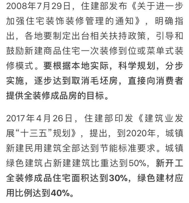 4月19日,湖北省政府发文《湖北出台促进建筑业改革发展二十条 推进建筑业改革创新》,对《意见》进行了解读,明确指出——“全面推行一体化装修技术,使业主可以拎包入住”,毛坯房……真的要再见了!