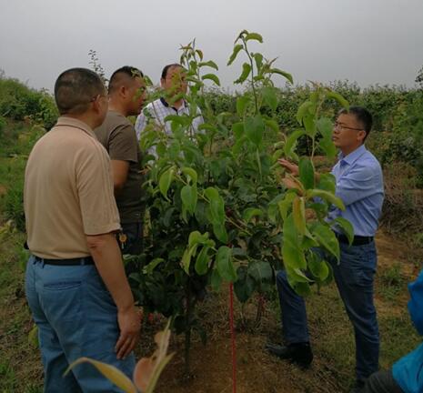 为了深入推进湖北省农业科技“五个一”行动,5月24日,受市农科院邀请,省农科院果茶所梨栽培专家杨夫臣博士来到“千村”行动之一的曾集镇孙店村,深入梨园基地进行现场指导,为基地负责人和市农业局驻村工作队详细讲解了梨锈病防治、拉枝整形、除砧修剪、施肥喷药等技术,安排了梨园田间近期管理工作,并表示在冬季还来进行实地指导。