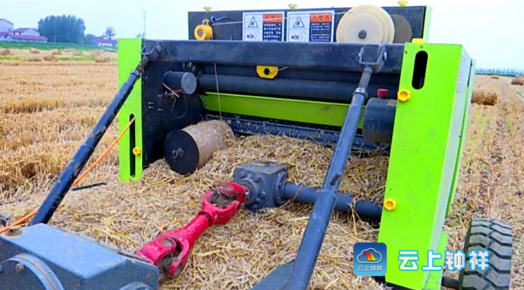 在柴湖镇大同村,田间堆满了成捆的秸秆,两台新型秸秆打捆机正在地里作业。