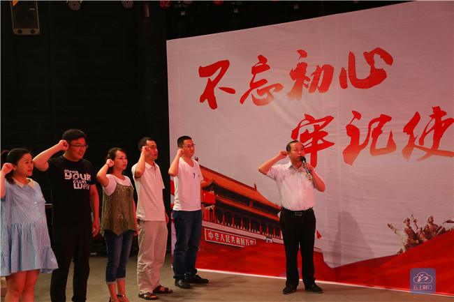 荆门广播电视台党委书记、台长邹灏带领5名新党员宣誓,全体老党员重温了入党誓词,党员们紧握右拳,再次向党庄严宣誓:“我志愿加入中国共产党,拥护党的纲领,遵守党的章程……永不叛党。”在铮铮誓词中,增强对党的坚定信念,时刻铭记作为一名党员的使命与担当,进一步强化了党员意识。