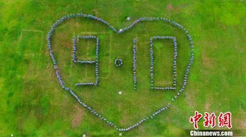资料图:300名大学生拼巨型“爱心”感恩教师。孟德龙摄