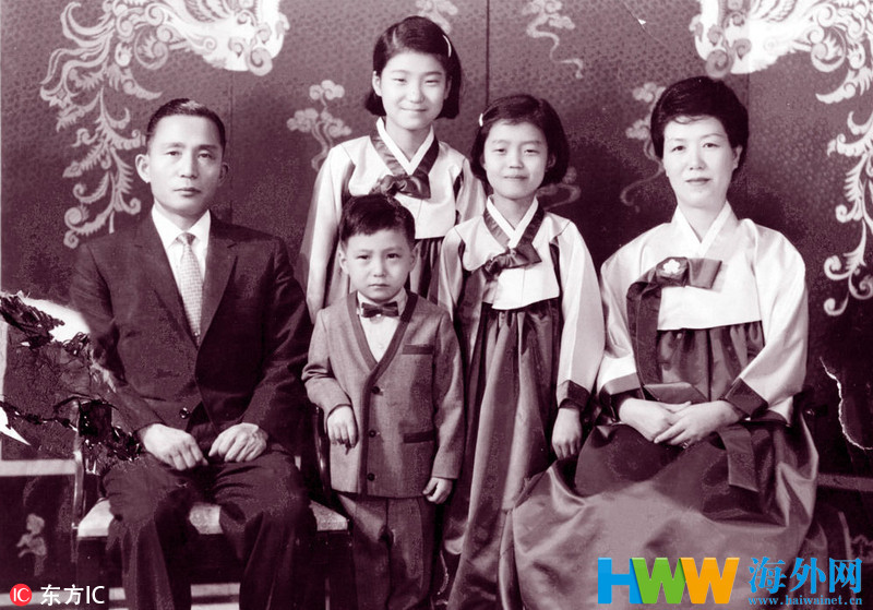 图为朴槿惠全家福。前左为朴正熙,前右为其夫人陆英修,后中为长女朴槿惠,后左为儿子朴志晚,后右为次女朴槿令。(东方ic)
