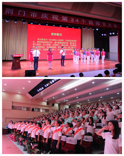会上,6名最美教师与6名新入职教师现场举行了“青蓝结对”仪式;市实验小学教师表演了诗朗诵《九月的赞歌》;237名新教师现场进行了入职宣誓。