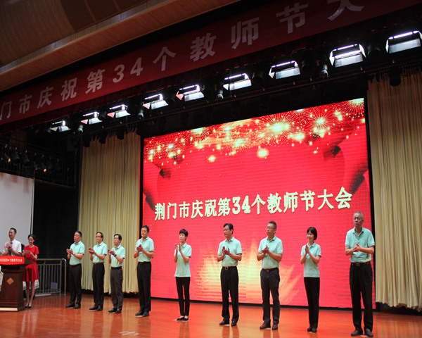 9月7日上午,荆门市庆祝第34个教师节大会在市海慧中学隆重举行。市政府副市长李珩,市政府副秘书长胡继锋,市教育局党委书记、局长舒君,以及市教育局党委成员出席庆祝大会。