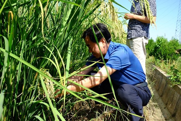 9月4日上午,荆门市农业局局长曾云一行来到东宝区子陵铺镇四坪村的巨型稻高产栽培试验田和金冢村的“巨型稻 小龙虾生态立体种养模式试验研究”示范田进行实地调研。曾云对试验基地巨型稻长势、项目技术创新设计和试验研究效果给予了充分肯定。