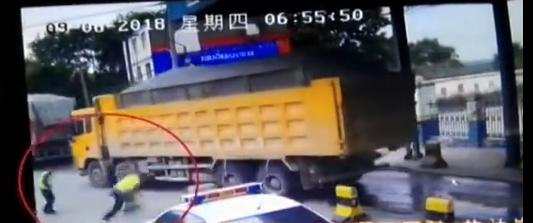 9月6日,团林治超站当班执法人员例行引导过往疑似超限货车进站过磅检测。6时50分,一辆满载砂石料的黄色大货车驶了过来,疑似超载,执法人员打手势,希望司机慢速到固定的检测通道进行检测。谁知司机快速强行通过,将通道出口左侧的两个安全墩撞飞,其中一个安全墩将一名执法人员击中。事发后,值班站长报警并将受伤的执法人员送至附近医院治疗。团林派出所立即介入,立案调查。
