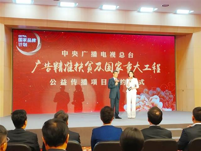 10月26日,中央广播电视总台广告精准扶贫及国家重大工程公益传播项目签约仪式在北京梅地亚中心多功能厅举行。湖北多种优质农产品列入“cctv国家品牌计划——广告精准扶贫”免费推荐项目。届时,将在央视多个最有影响力频道的公益广告黄金时段刊播,每天每个产品的播出频次不低于20次,向全国推广。