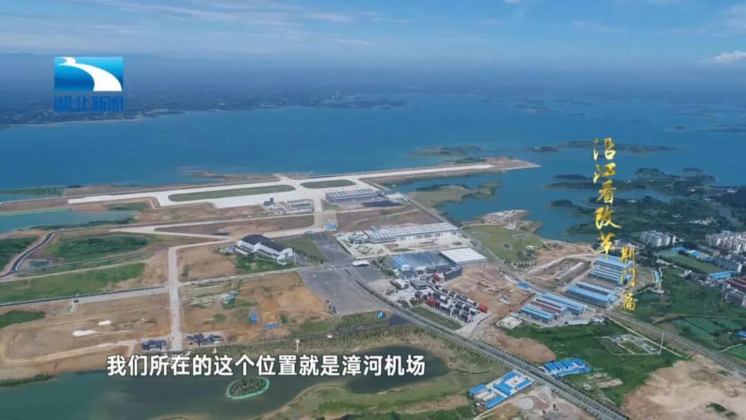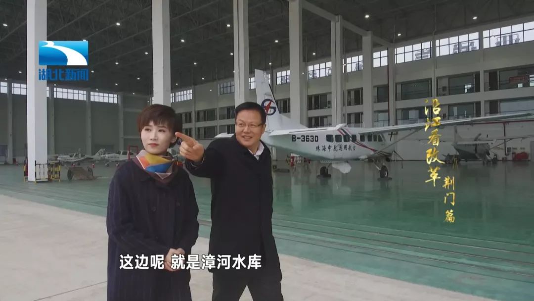 荆门市委书记 张爱国:欢迎你到我们荆门来。这是到了漳河机场。左边这个地方就是我们漳河通用航空公司生产的水陆两栖用的飞机,另一边就是漳河水库,我们所在的这个位置就是漳河机场,前面是跑道,这个机场应该就算是我们湖北乃至中部最大的水陆两用的机场,欢迎你来参观。
