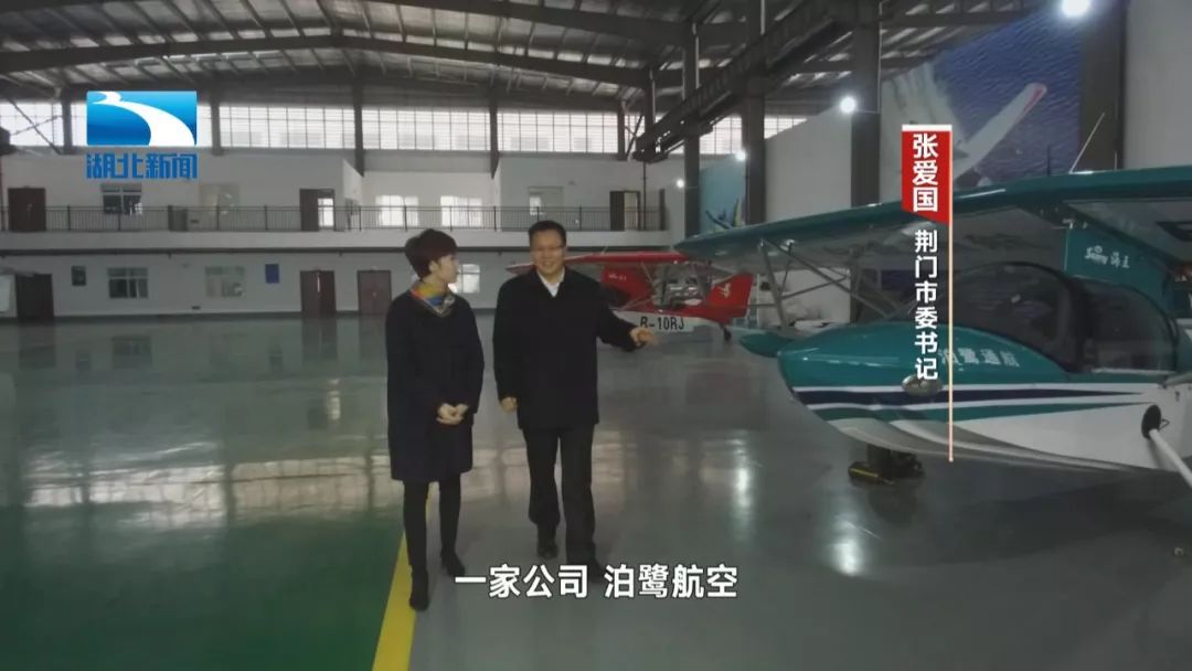 荆门市委书记 张爱国:你看现在我们来到爱飞客小镇的一家公司——泊鹭航空。他现在生产了大概有四架飞机。这就是我们近几年先后引进来的14家公司的其中之一,市场前景现在也是比较广阔的,将来发展的前景很好。