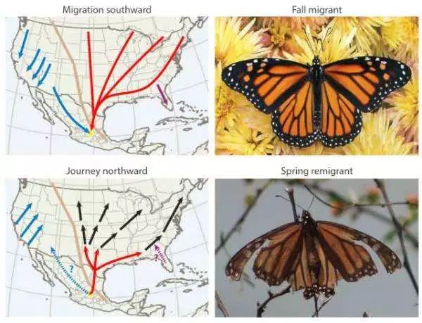 长途迁徙中,帝王蝶如何导航呢?原来这帝王蝶依靠太阳导航,它们体内含有生物钟,有两根触须上可以生成时钟讯号,可以对太阳方位进行校正。在太阳的导航下,它们一路向西南飞行,早上沿着太阳右边向前飞,下午靠着太阳左边飞。