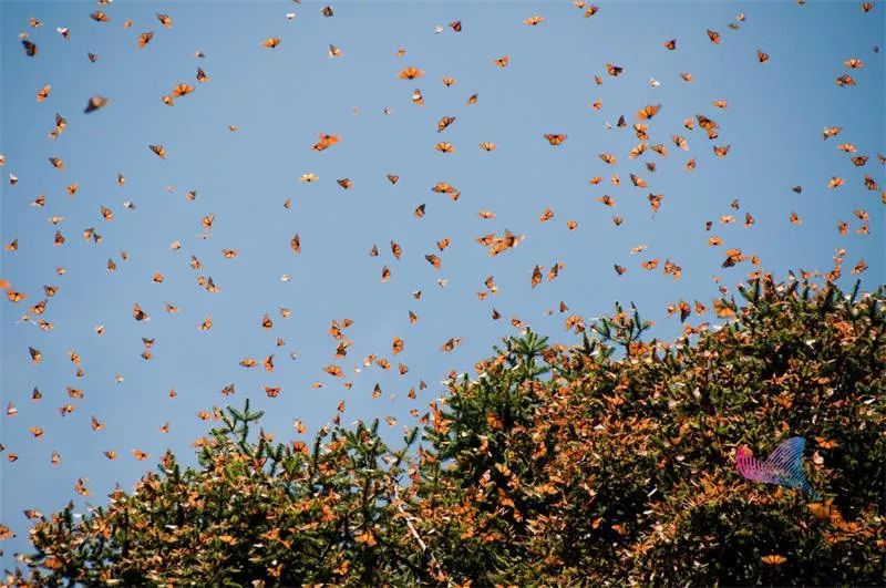 除了惹人厌的蝗虫以外,在昆虫的迁徙大军中,还有一种叫做帝王蝶的,它们的迁徙堪称震撼。帝王蝶翼展大约10厘米,重0.5克,但它们却以弱小的生命上演了迁徙之路上的传奇。