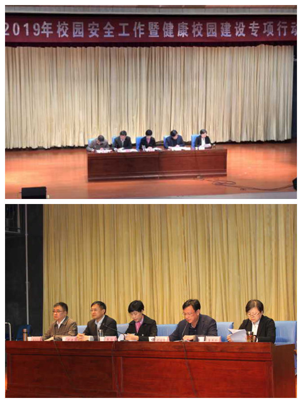 市政府副市长李珩在讲话中指出,学校安全工作责任重大,任务艰巨,全市上下务必要统筹抓好部门、校长、岗位人员三级责任落实,切实构筑全员抓安全的责任体系;要持续抓好“五防”建设,在抓好人防、物防、技防传统“三防”的基础上,重点抓好“心防”建设与“网防”建设;要精准抓好重要节点,平时抓“早、中、晚”三个时段,节假日抓“假前、假中、开学时”三个节点,突出抓“重大节日和活动节点”;要常态抓好宣传教育,做到安全教育体系化、安全演练要常态化、安全培训要制度化;要长效抓好安全生产,进一步加强食品卫生管理,进一步加强消防安全管理,进一步加强校车安全管理;要突出抓好安全整治,开展多频次整治行动,开展随机式检查督办,开展多层级考评管理。