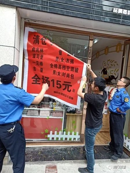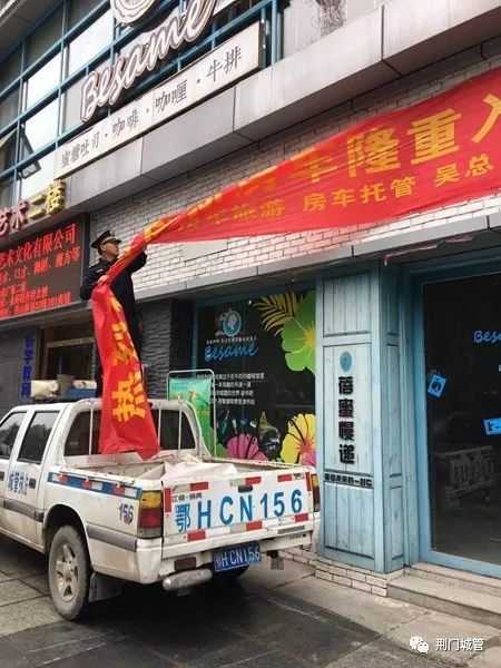 东宝城管部门严格按照《荆门市城市临街建筑外立面管理办法》和创城要求,组织力量对临街门店商铺违规在店面门框、玻璃幕墙、门前立柱和地面等地随意张贴标语标帖行为开展摸底调查,先后清除工商街、中天街及周边路段临街商铺玻璃幕墙、立柱、店前地面等张贴物1000多处,拆除破损横幅、广告招牌、喷绘广告布50余处,同时对辖区白云大道、塔影路、雨霖路、长宁大道、象山一路、泉口一路、泉口西路等路段临街商铺一店多招问题下达限期整改通知书20余份,近期将组织对限期未整改的依法予以强制拆除。