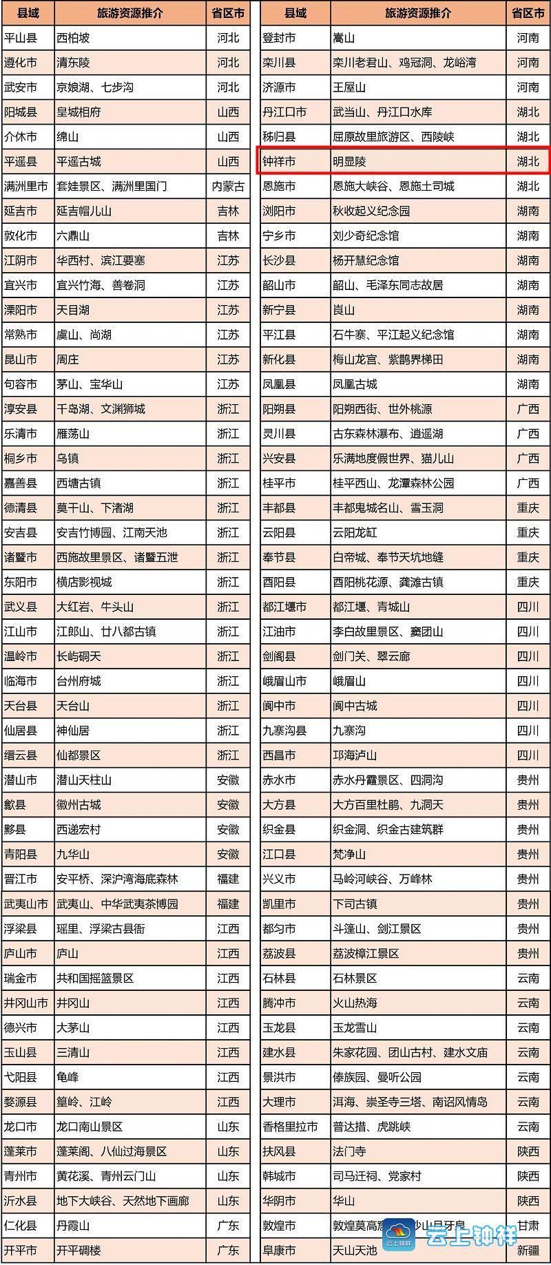 湖北4县市入榜,钟祥占1席!