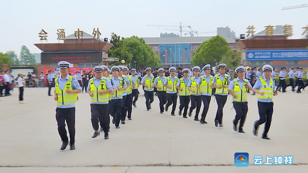 会议结束后,钟祥市公安局在东方之星外国语学校组织开展了2019年高考安保演练。