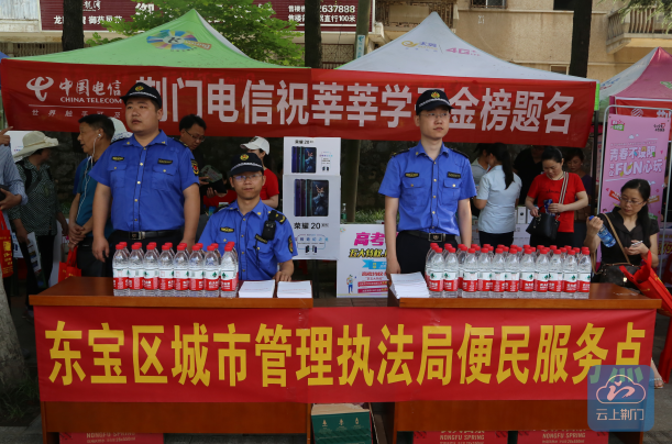 【云上荆门报道】6月7日是高考首日,不到早上7点半,在荆门市各大中学高考考点外,东宝区城管执法队员像往年一样在考点周边设立“爱心服务站”,尽心尽力做好护考工作,保障高考顺利举行。
