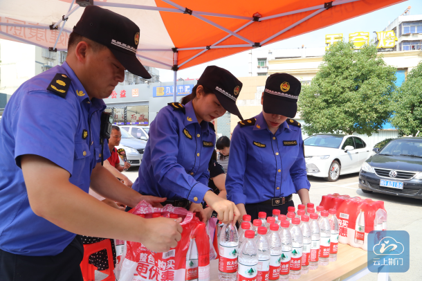 据东宝区城管执法队员刘淼介绍,“我们提前为考生准备了消暑物品,提前搭好了凉棚。同时为了方便学生家长等候,我们还为考生家长准备了饮用水、座椅等休息物品,缓解他们焦急等待的心情。”