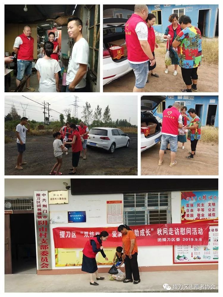 中秋节前夕,荆门市掇刀志愿者走进农村关爱贫困留守儿童掇刀区志愿者协会 昨天秋风送爽,田园丰收,在这充满喜悦的季节,即将迎来我国传统佳节中秋节。在中秋节前夕,团掇刀区委和掇刀区志愿者协会联合组织开展“双结双促·爱满四季助成长”之秋问走访慰问,暨“爱心伴成长”关爱贫困留守儿童之“中秋送团圆”慰问活动,志愿者们兵分五路分赴掇刀辖区各个乡村,为农村贫困留守儿童送去爱心人士捐赠的书籍、月饼、水果及生活用品,带去一份暖暖的关爱。