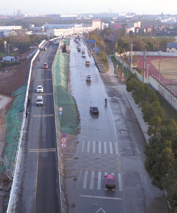 备受关注的207国道子陵立交桥建设有了新进展。12月3日,记者在子陵立交桥施工现场看到,该桥东半幅建成通行。据东宝区公路局相关负责人介绍,子陵立交桥改建工程于2019年1月动工,目前该桥东半幅路面工程完工,具备通车条件,但仍禁止中重型货车通行,下一步将对西半幅老桥面进行封闭施工。