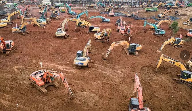 经过一天一夜连续奋战,截至24日晚,火神山医院项目累计平整全部场地5万平方米,相当于7个足球场大小,内转土方15万立方米,足以填满57个游泳池,一座小土山已被连夜铲平,碎石回填于除夕夜完成,25日可开始主体施工。