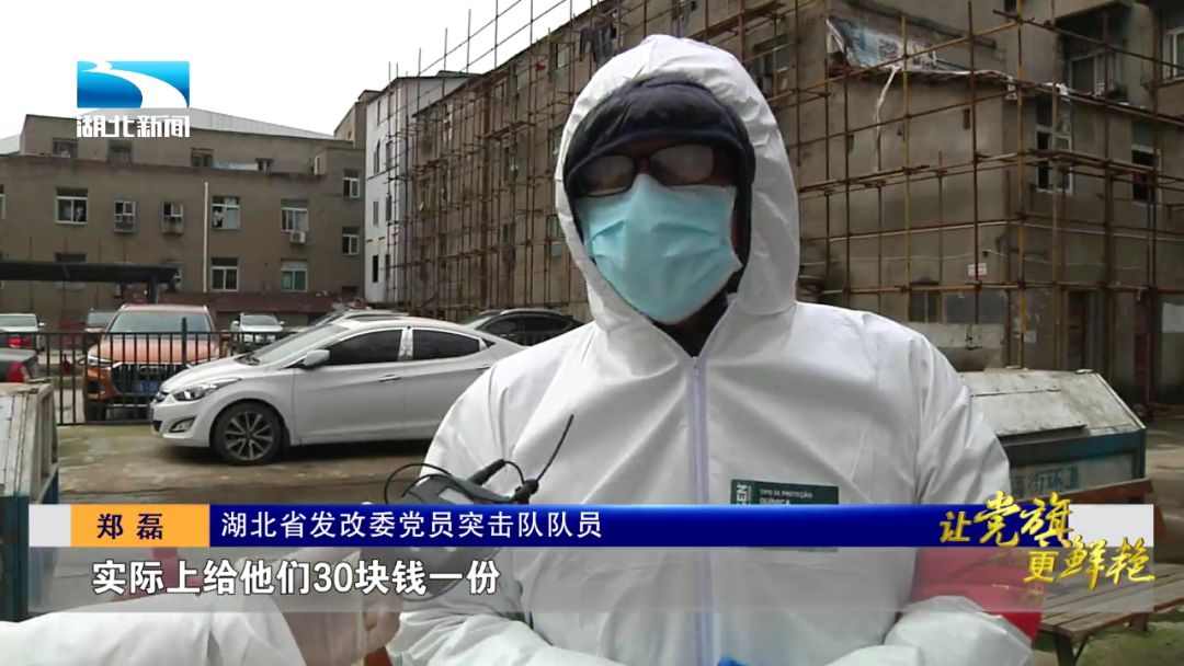 湖北省发改委党员突击队队员 郑磊:解决他们购菜的实际困难,我们跟中商联系,订购100份打包好的蔬菜,原价是50块钱一份,实际上给他们30块钱一份。