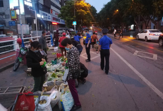 最近,针对荆门象山菜场周边及沿河路临时农户售卖疏散点的环境秩序和卫生等问题,按照全国文明城市创建要求,5月27日凌晨5时许,荆门泉口街道城管执法中队安排7名执法人员,对该处现场经营秩序进行规范整治。