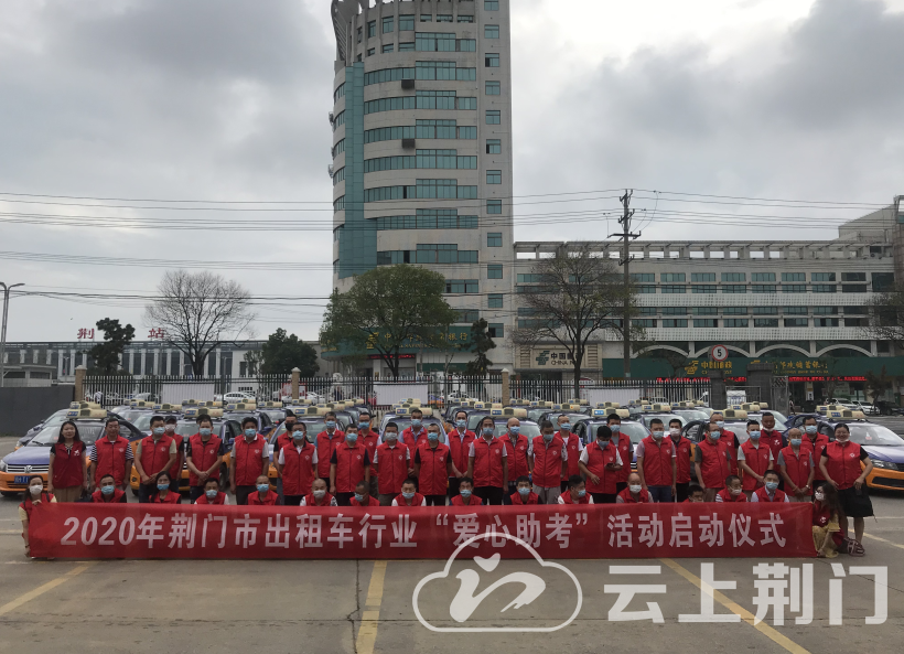 7月6日上午,荆门城区8家出租汽车公司40名出租车司机在荆门市公交集团一公司院内集合,举行“爱心助考,助力未来”2020荆门市出租车行业“爱心助考”活动启动仪式,组建爱心护航车队,一对一免费接送有需要的考生,帮助广大考生安全、便捷、顺利参加高考。