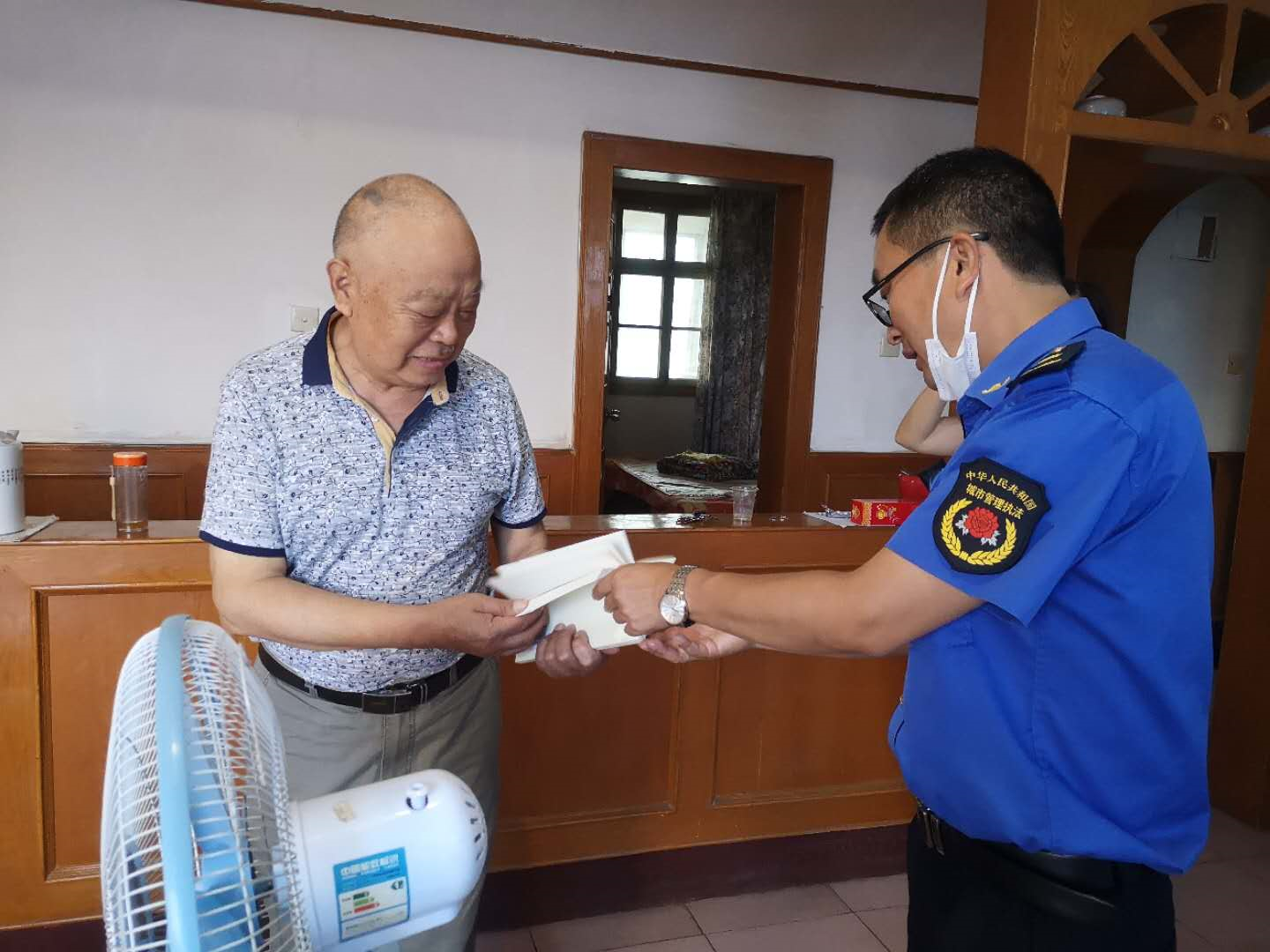 在中国共产党建党99周年到来之际,荆门市东宝区城管执法大队第三支部书记夏建军到退休老党员的家中进行走访慰问,为他们送去学习资料和节日的祝福。