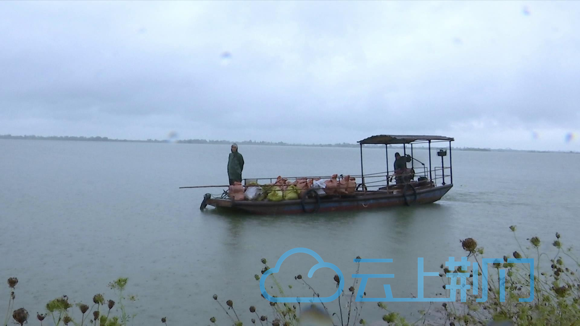 另一边,近20名村民正冒雨填装沙袋,再通过小船将填装好的沙袋运送到险段上。据杜礼文介绍,7月6日上午十点钟发现险情后,他立即调集人员前来防汛。