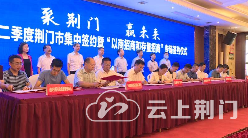 7月8日上午,荆门市举行二季度项目集中签约暨“以商招商和存量招商”专场签约活动,共有50个重大项目签约,协议金额220.97亿元。