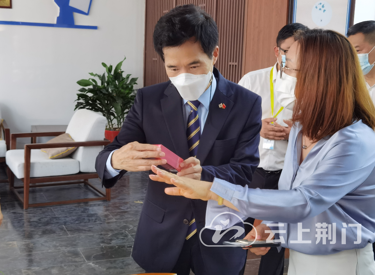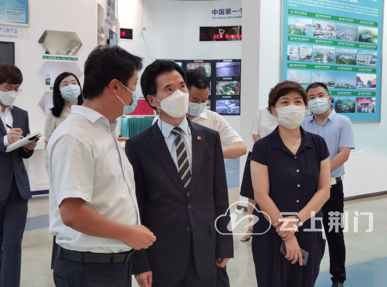 会见前,韩国驻武汉总领事姜承锡一行先后参观了荆门格林美新材料有限公司和菲朗生物科技(湖北)有限公司。