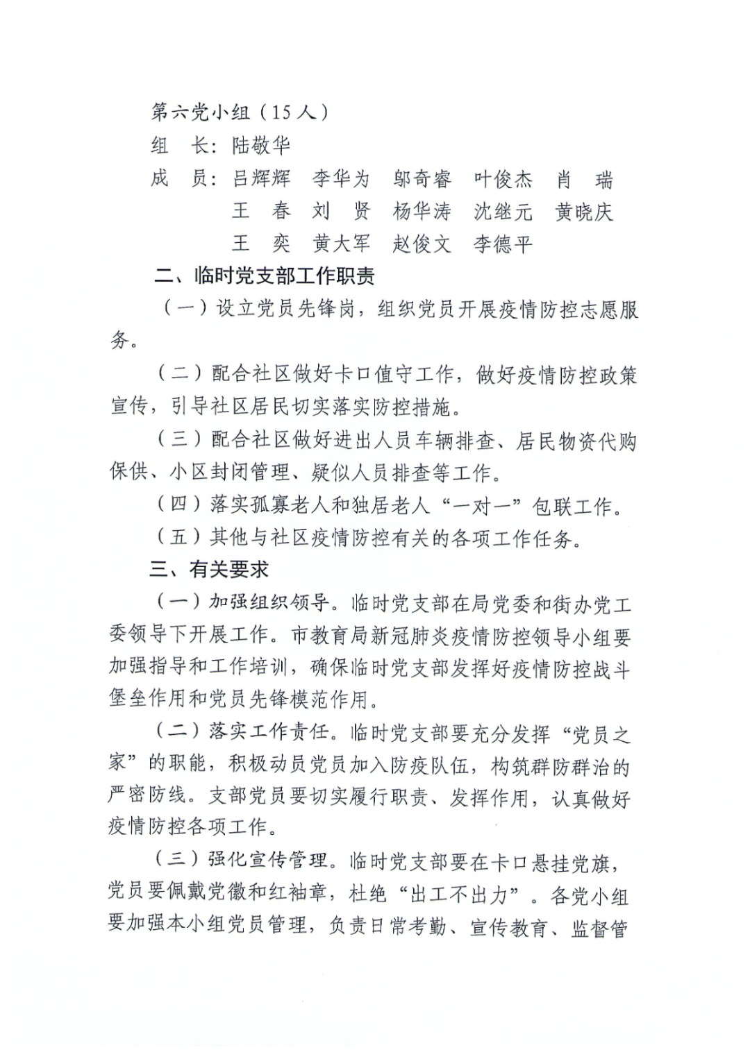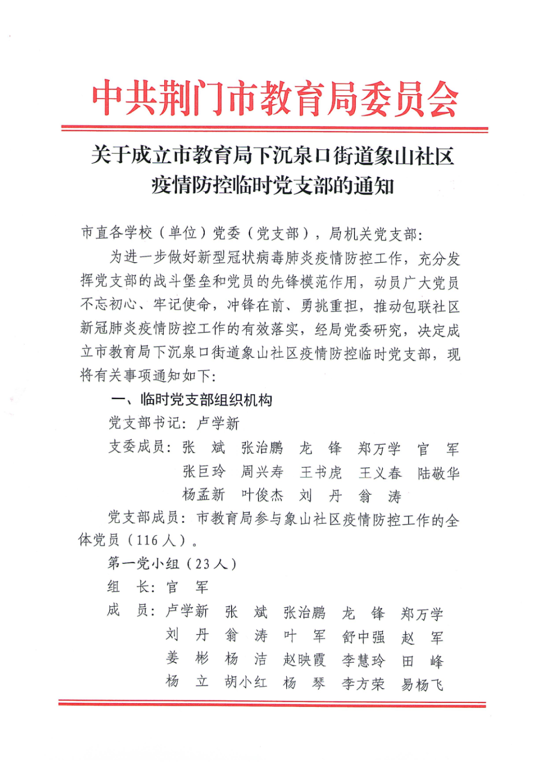 疫情在哪里党组织就建在哪里,党旗就飘扬在哪里,每一个党组织都是一个战斗堡垒,每一名党员都是一面旗帜,今天市教育局党委组织局机关、直属二级单位和学校116名党员成立临时党支部下沉象山社区投入疫情防控战斗之中。