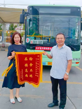 今天上午,杨先生委托同事将一面“拾金不昧 品德高尚”的锦旗送到公汽一公司支部书记手中,表达对杨龙华师傅的敬意。