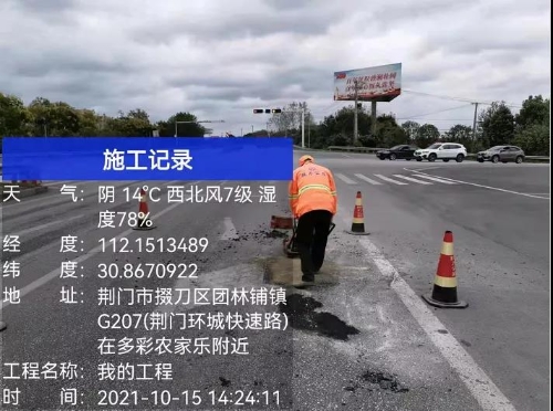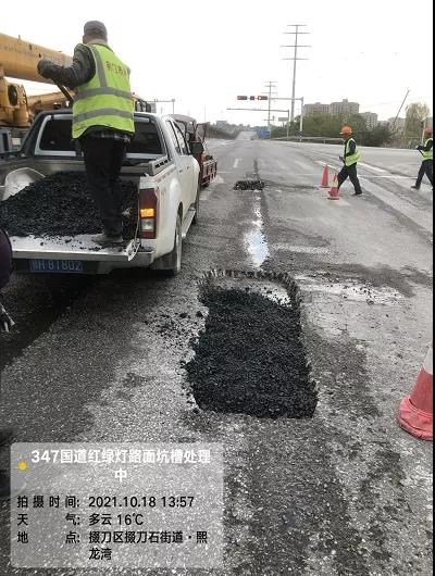 已于10月15日安排养护人员进行修补完成。后期要求路面出现小坑槽必须一天内完成修复。