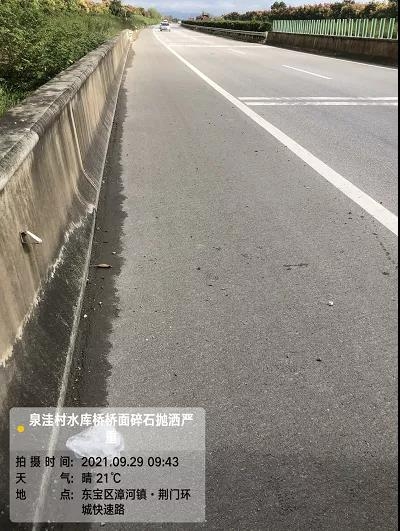 王郎沟水库二号桥、泉洼村水库桥桥面碎石抛洒严重。