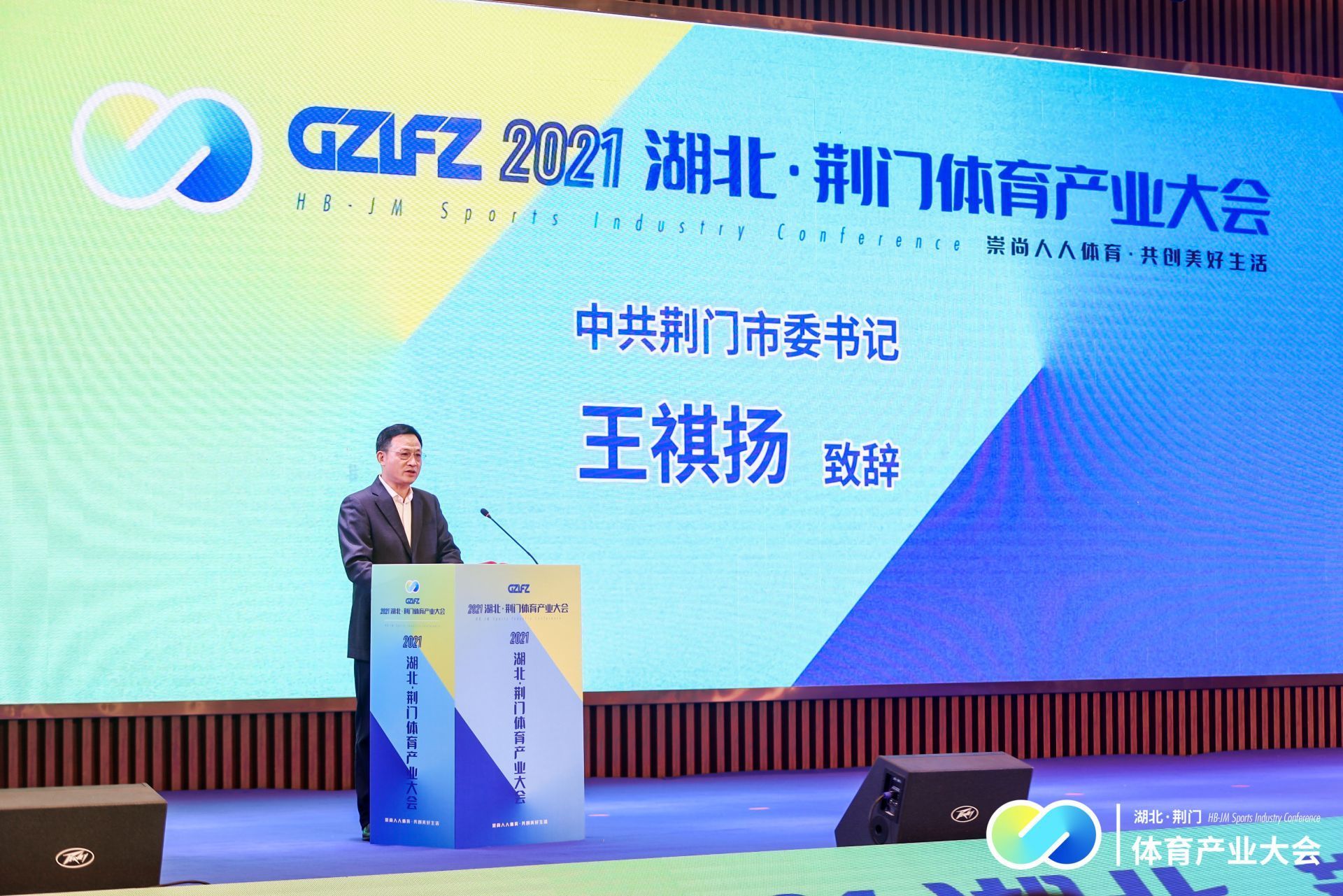 王祺扬在致辞中向出席本次大会的各位嘉宾表示热烈欢迎,向长期以来关心、支持荆门和致力于荆门体育事业发展的各界朋友表示衷心感谢。他说,荆门是一座运动休闲之城,深厚的体育文化底蕴滋养了这片土地,也为荆门体育产业发展注入了生生不息的活力。近年来,荆门认真贯彻落实省委省政府“体育强省”部署,深入实施“体育强市”战略,不断推动体育产业高质量发展。我们深切体会到,推进体育产业高质量发展必须树立“大格局”观念,坚持用市场观念、产业观念、系统观念谋划推进体育产业发展,不断推动群众体育市场化、竞技体育产业化、体育产业一体化;要增强“大服务”理念,强化设施配套,打造赛事品牌,开展体育培训,着力构建政府主导、部门协同、全社会共同参与的体育生态圈;要做好“大融合”文章,推动体育产业与先进制造业、旅游业、特色小镇建设、教育、医疗、商业融合,有效激活体育消费和产业发展的“一池春水”。未来五年,荆门将加快建成国内有影响力的运动休闲、康养度假、研学旅行、文化旅游目的地,创建国家体育消费示范城市,打造特色鲜明的区域文旅消费中心,为湖北“体育强省”建设作出荆门新的贡献。