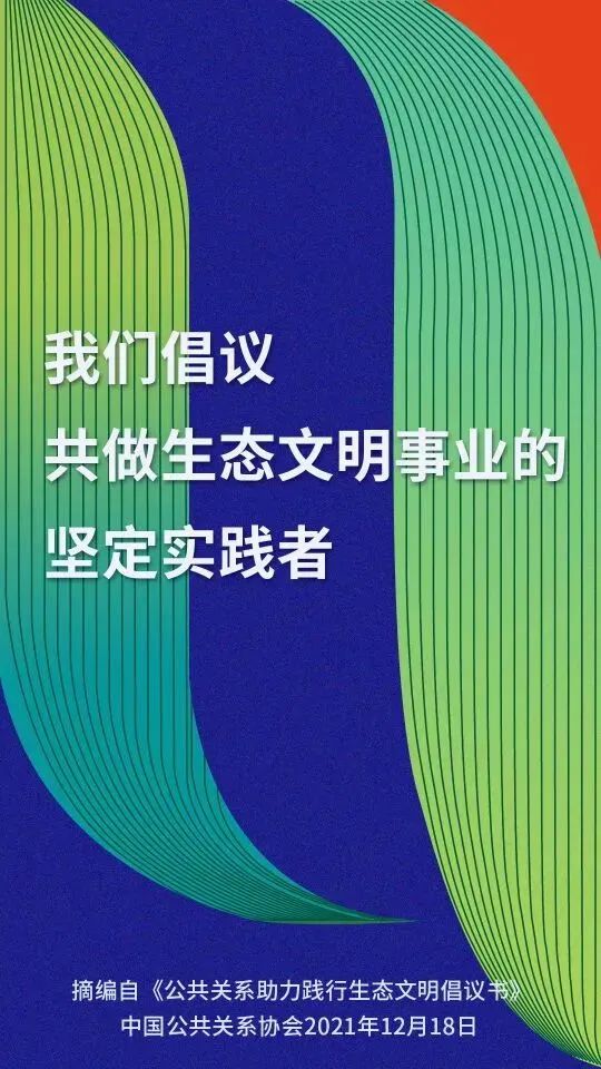 我们倡议,共做生态文明建设的专业推动者。公共关系领域同仁要运用专业力量积极引导民众正确认知,推动达成社会共识,促进各方参与生态文明建设。将生态文明理念融入行业标准制定、价值观念建设、凯发k8娱乐官网入口的合作伙伴选择、产品设计制造等运营全过程,推动更多机构、企业和个人践行生态文明,多渠道、多角度倡导全社会共同建设美丽中国。