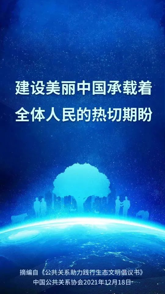 建设美丽中国承载着全体人民的热切期盼,保护地球家园是人类社会命运与共的美好愿望。公共关系各方有义务、有责任、有能力做好理念传播、推进实践发展。共建美丽中国,共护人类家园,我们义不容辞!