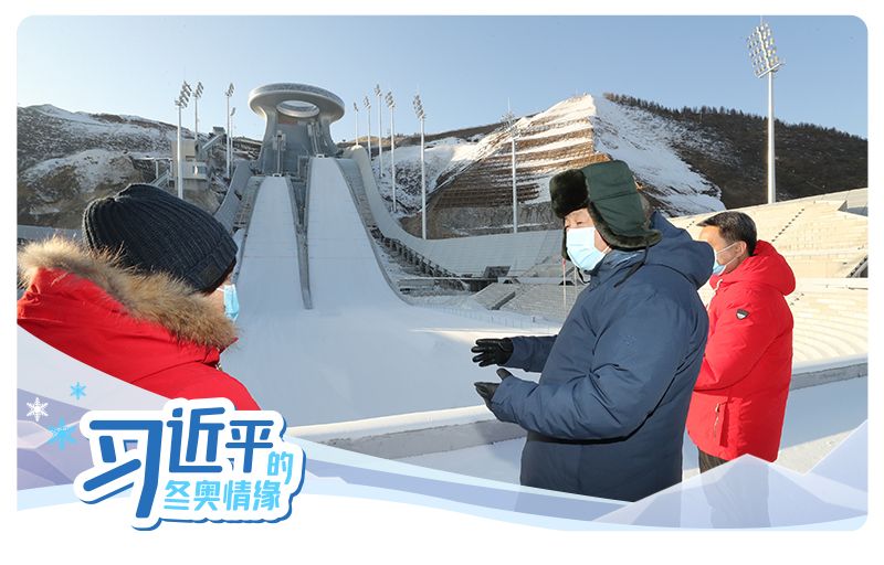 2021年1月19日,中共中央总书记、国家主席、中央军委主席习近平在张家口赛区国家跳台滑雪中心考察。