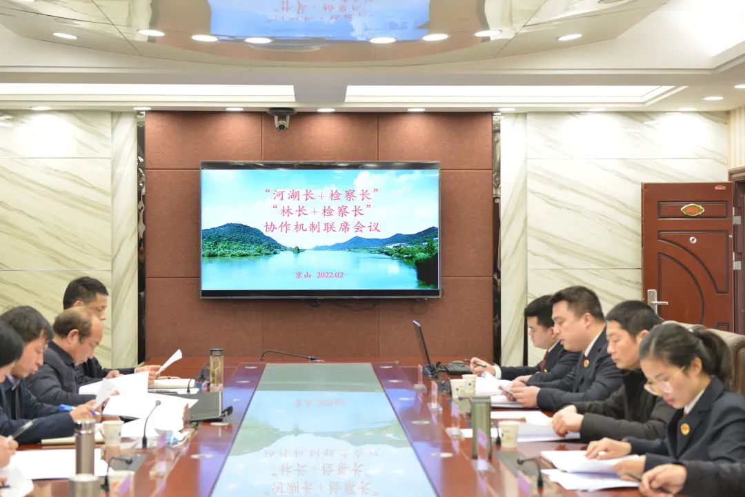 2月23日,京山市检察院召开“河湖长 检察长”“林长 检察长”协作机制联席会议