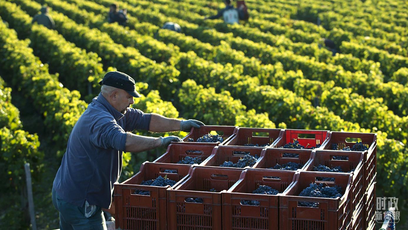 △法国波尔多葡萄酒是首批在中国受保护的欧盟100种地理标志产品之一。这是庄园采摘现场。(图/视觉中国)