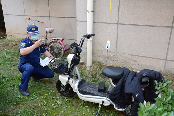 上午9时,在沙洋镇某小区,检查组发现有部分住户在住宅楼外从窗户私拉电线给电动车充电的情况。据物业负责人介绍,虽然相关单位和小区物业多次对“飞线充电”等行为的危害进行了宣传讲解,并对相关人员进行了劝导,但小区内私接电线给电动车充电现象屡禁不止,给小区消防安全埋下了隐患。针对此次检查中发现的电动车乱停乱放、电线私拉乱接,特别是高空飞线充电的违规情形,检查组进行了现场拍照存证,并要求当事人立即整改。