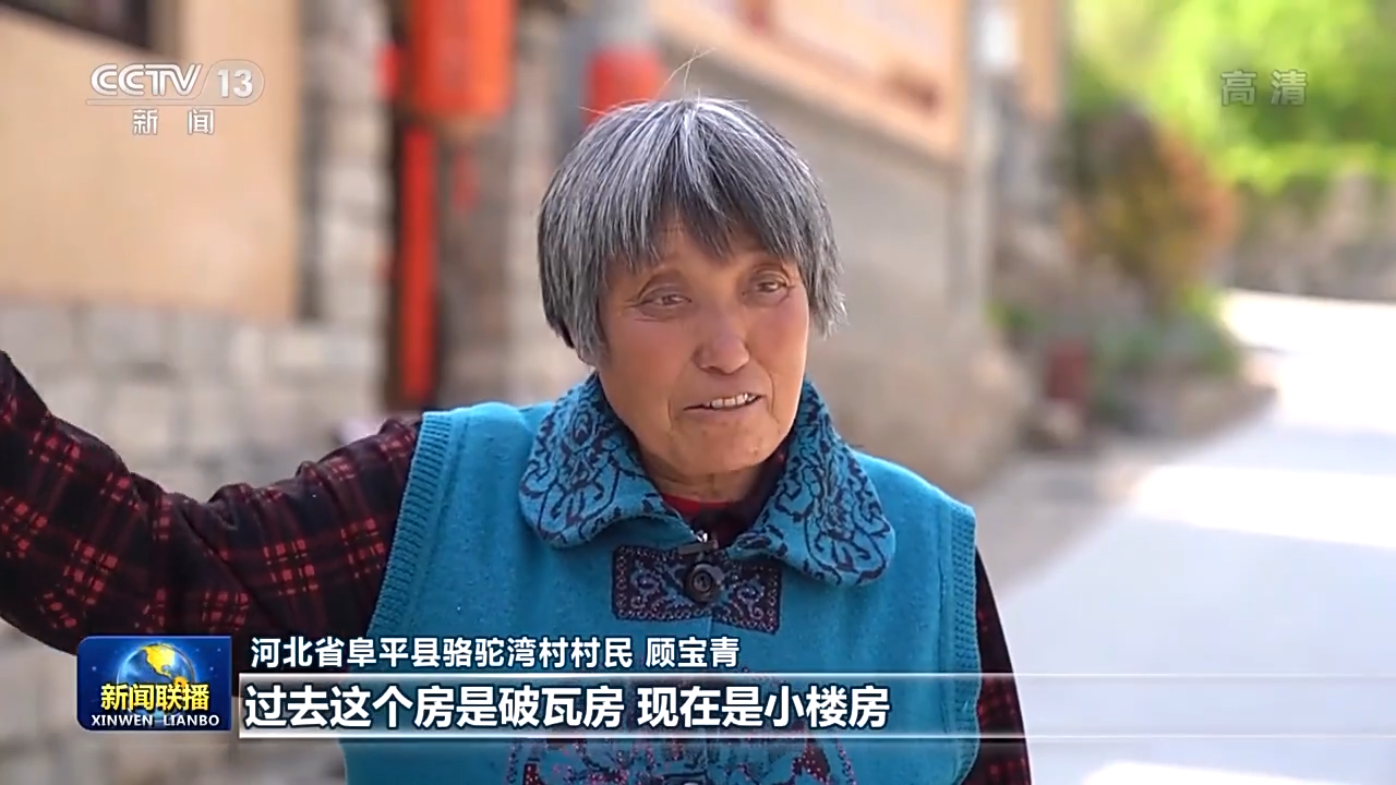 河北省阜平县骆驼湾村村民 顾宝青:过去这个房是破瓦房,现在是小楼房。过去路是土路,现在是柏油路。日子越过越红火,感谢党中央的好政策。