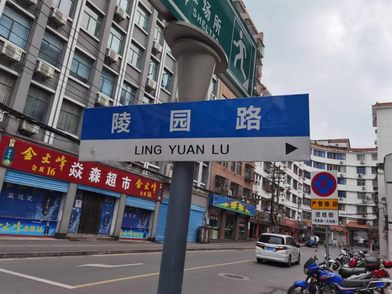 图为东宝区龙泉街道团结街陵园路指示牌