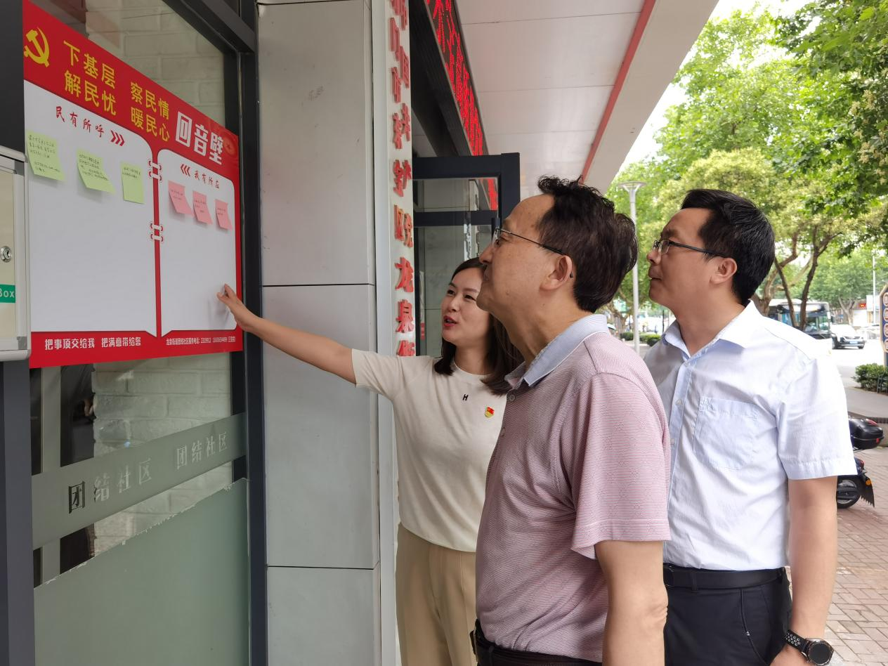 图为市委下基层察民情解民忧暖民心第三指导组在查看《回音壁》