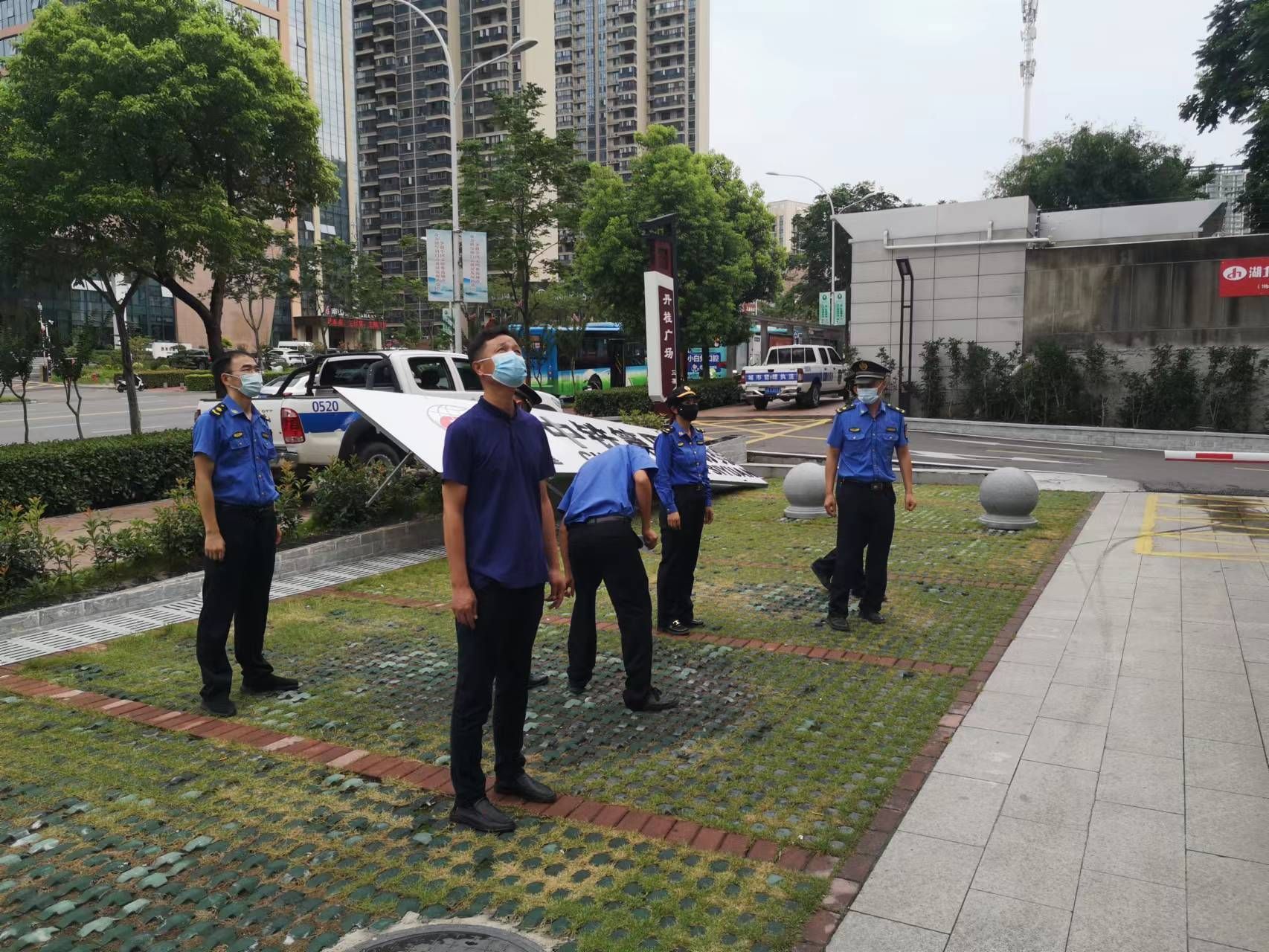 为进一步加强店招店牌管理,及时消除店招店牌等设施存在的安全隐患,7月27日,荆门市城管执法督察支队督办掇刀石街道综合执法中心对丹桂广场外墙新设置的违规店招店牌进行了拆除。