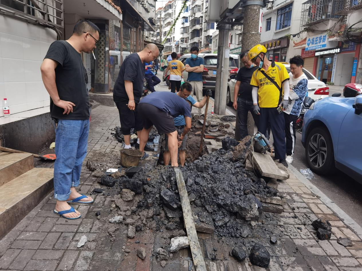 通过排查,找到堵塞原因后社区现场与市政园林专业人员敲定施工方案,因为天气炎热,决定迅速安排施工队伍连夜进行维修,社区纪检委员和社区工作人员负责现场维持施工秩序,经过奋力抢修,更换了管道,彻底解决了下水道堵塞问题,改善了居民出行环境。