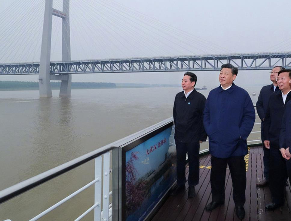 (2018年4月25日,习近平总书记从宜昌前往荆州,察看长江沿岸生态环境和发展建设情况。)